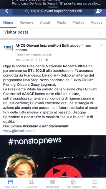 La Presidente dei Giovani Ance Roberta Vitale ha partecipato il 18 maggio scorso su RTL 102.5 alla trasmissione "La scossa" condotta da Francesco Delzio