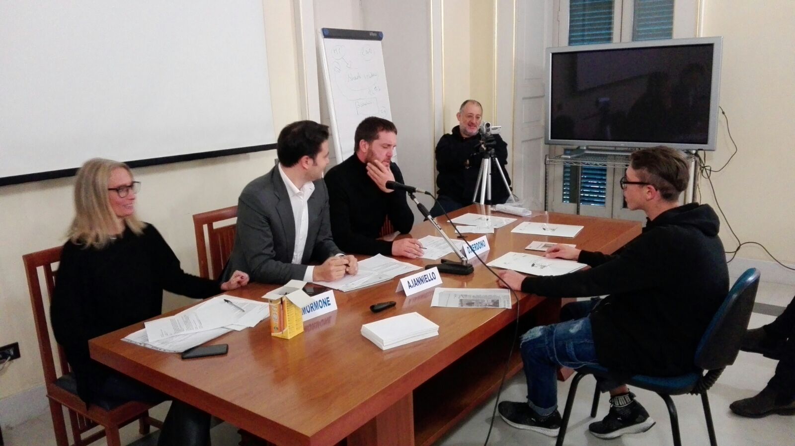 Nelle foto la prima sessione in cui i Giovani Imprenditori dell’Acen simulano con gli studenti dell’Istituto per geometri colloqui di lavoro e modelli di selezione.